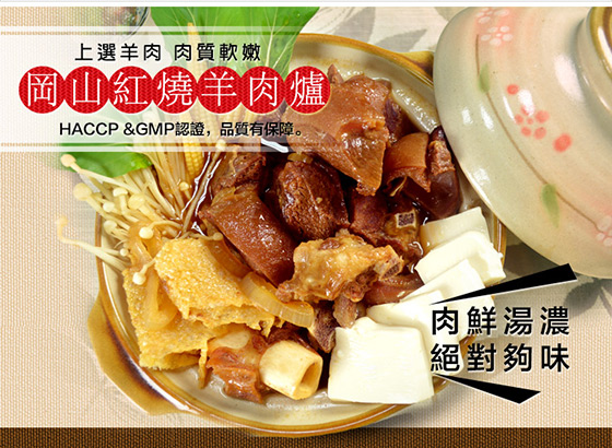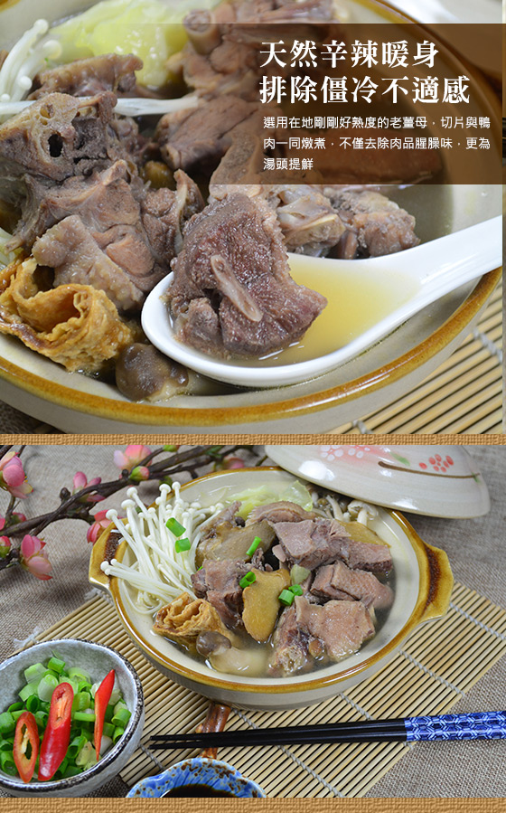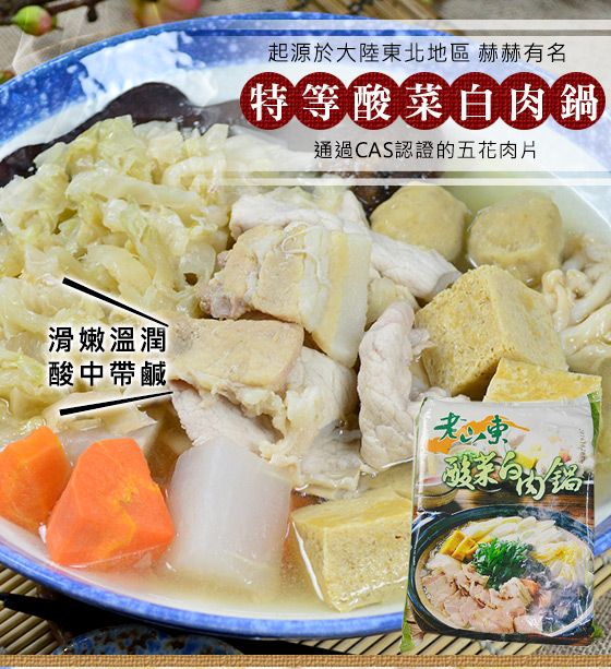 大口吃鮮嫩肉品,大口喝濃郁熱騰騰湯頭,大肆品味暖冬好鍋物。 ![]() ![]() ღ頂級岡山紅燒羊肉爐 ![]() ![]() ღ古早味薑母鴨 寒冷的冬季裡,老薑母變身成為當紅炸子雞,天然辛辣的暖身魅力,讓您排除僵冷不適感,選用在地剛剛好熟度的老薑母,切片與鴨肉一同燉煮,不僅去除肉品腥臊味,更為湯頭提鮮,每一口是暖進心裡好美味。 ![]() ![]() ღ特等酸菜白肉鍋 赫赫有名的酸菜白肉鍋,起源於大陸東北地區,醃漬的大片酸香白菜,讓人聞了忍不住分泌唾液,食慾跟著打開,加入通過CAS認證的五花肉片,微微的油脂讓口感滑嫩溫潤,酸中帶鹹的好湯頭,搭配白飯吃更是一絕。 ![]() ![]() ![]() 品名:【鮮到家】暖冬大口吃鍋物系列 口味:【鮮到家】頂級岡山紅燒羊肉爐 規格:1100g±5%/包(固形物250g±5%) 內容物成份:羊肉、鹽、番茄醬、天然香辛料、豆腐乳、DL-安基丙酸、辣椒、氫化棕梠脂、麻油 產地:台灣 保存期限:1年 有效期限:標示於包裝上 投保產品責任險字號:1687字第03000081號 口味:【鮮到家】古早味薑母鴨 規格:1100g±5%/包(固形物250g±5%) 內容物成份:鴨肉、老薑母、雞粉、鹽、米酒 產地:台灣 保存期限:1年 有效期限:標示於包裝上 投保產品責任險字號:1687字第03000081號 口味:【鮮到家】特等酸菜白肉鍋 規格:1200G±5%/包(固形物380%) 內容物成份:酸白菜、CAS五花肉片、豚骨、雞骨湯、香菇絲、豆皮、百頁豆腐、貢丸、調味 產地:台灣 保存期限:1年 有效期限:標示於包裝上 投保產品責任險字號:1687字第03000081號 ※因製作/包裝過程繁複,實品規格可能會有些許誤差。 ※爲保持產品最佳風味,開封後請盡速食用完畢。 ※商品圖檔顏色因電腦螢幕設定差異會略有不同,以實際商品顏色為準。 |