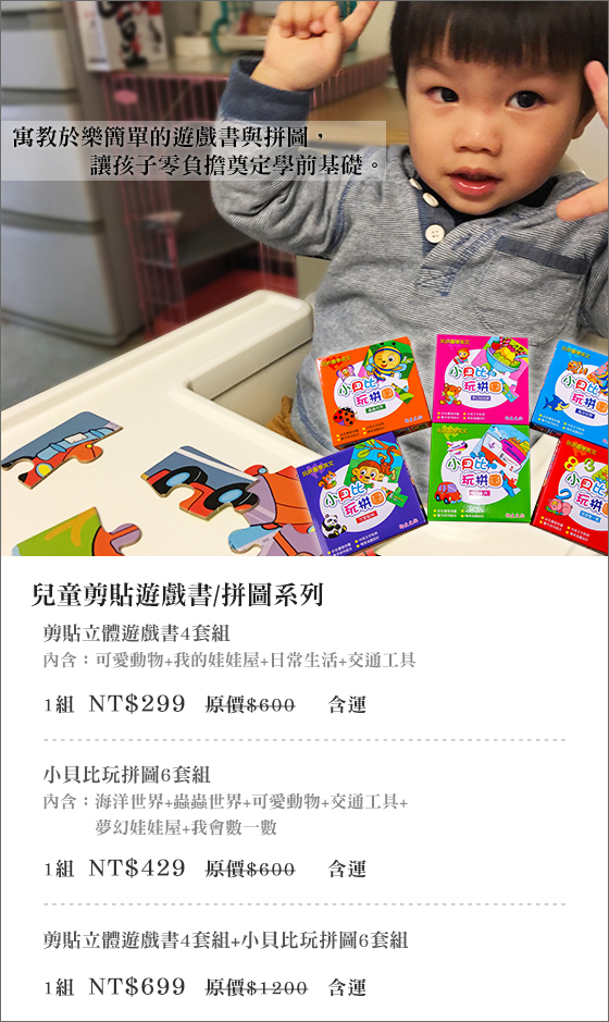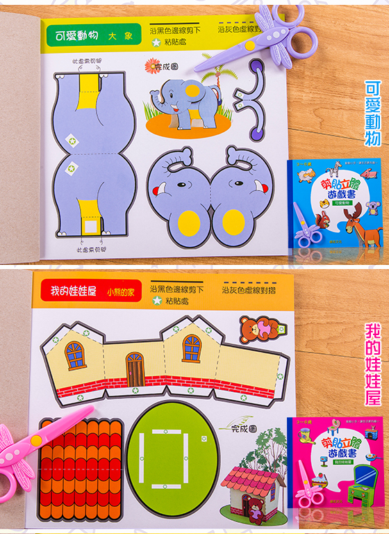 只要299元起(含運)即可享有原價最高1,200元兒童剪貼遊戲書/拼圖系列1組:(a)剪貼立體遊戲書4套組(可愛動物+我的娃娃屋 ...